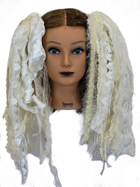 Cream Gothic Ribbon Hair Falls by Dreadful Falls