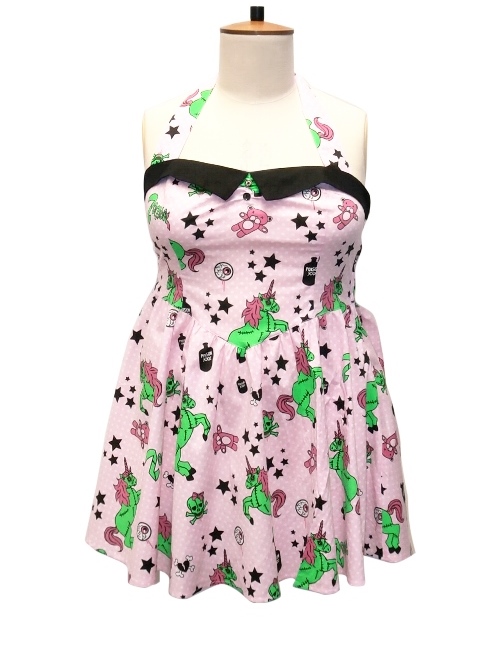Hell Bunny Plus Size Gothic Pink I Heart Zombie Unicorn Mini Dress