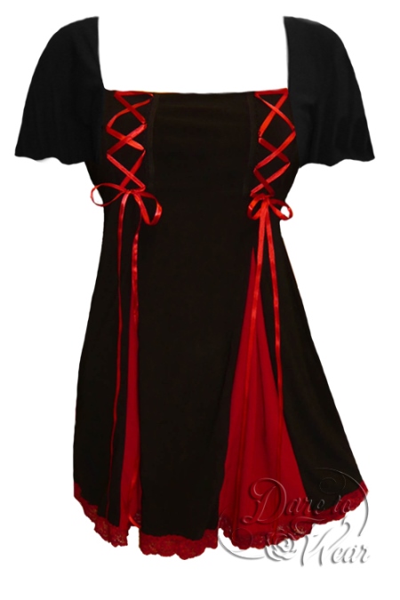 Plus Size Short Sleeve Gemini Princess Black & Red Gothic Corset Top